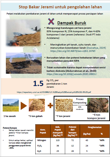 1 hektar sawah berpotensi menghasilkan 7 ton jerami, yang potensial untuk menjadi 4 ton kompos.